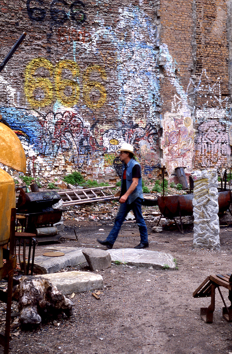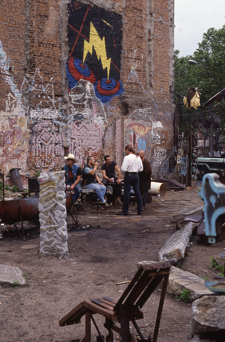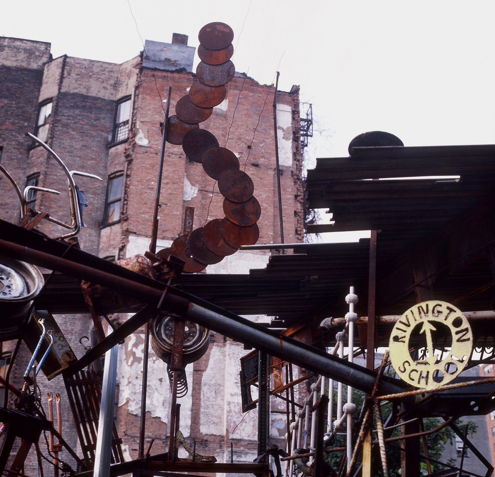 En 1993, c’est à New York que j’ai découvert « Rivington School » grâce à Richard Serra, le grand sculpteur d’acier, avec qui je travaillais. Sur les conseils de Richard, son assistant nous amena alors visiter ce qu’il restait du jardin-friche de sculptures au croisement de Rivington et de Forsyth Avenue.