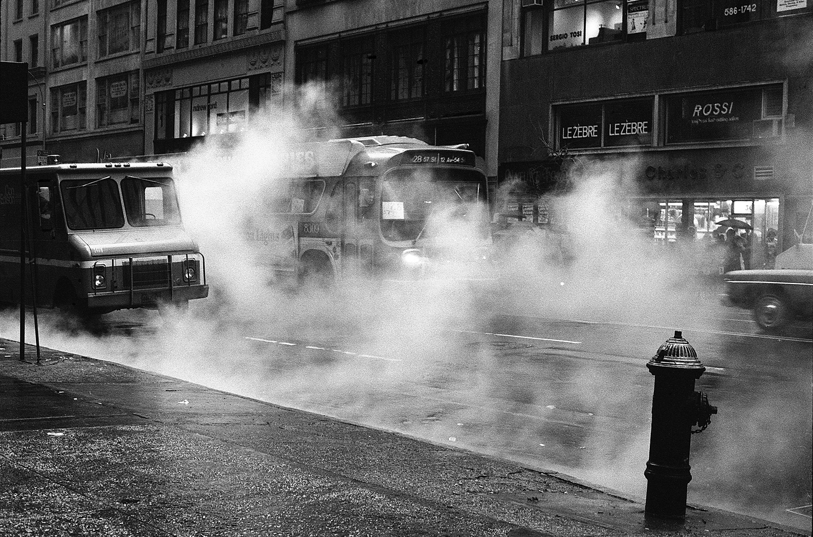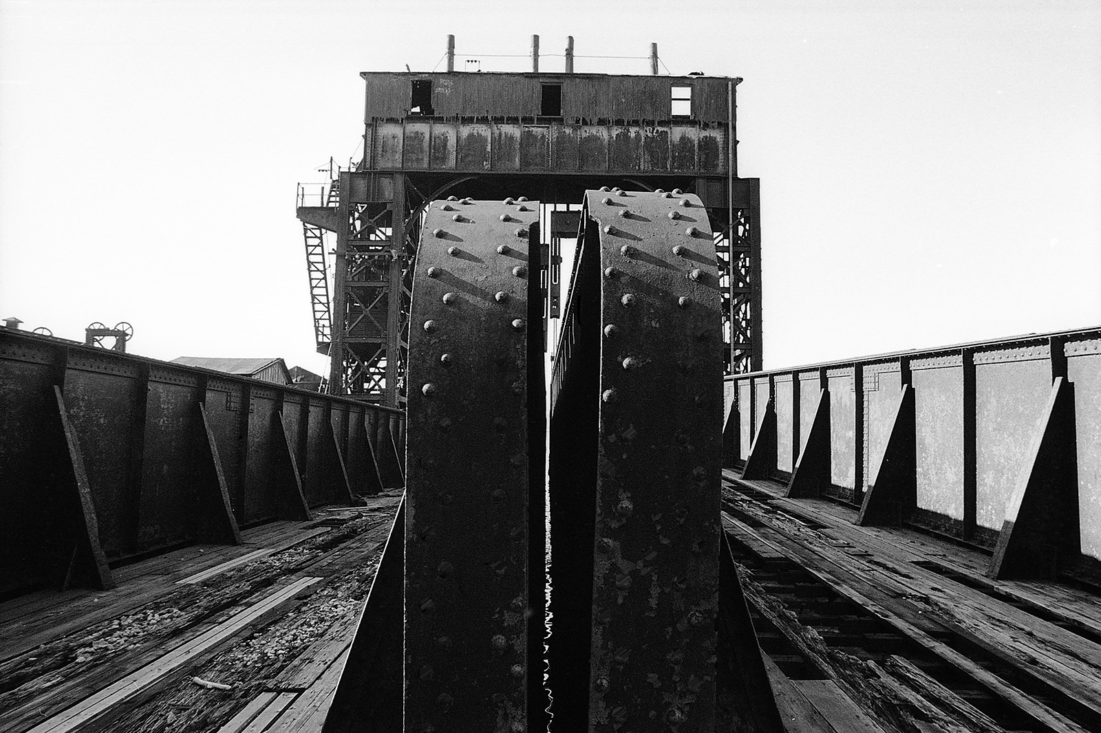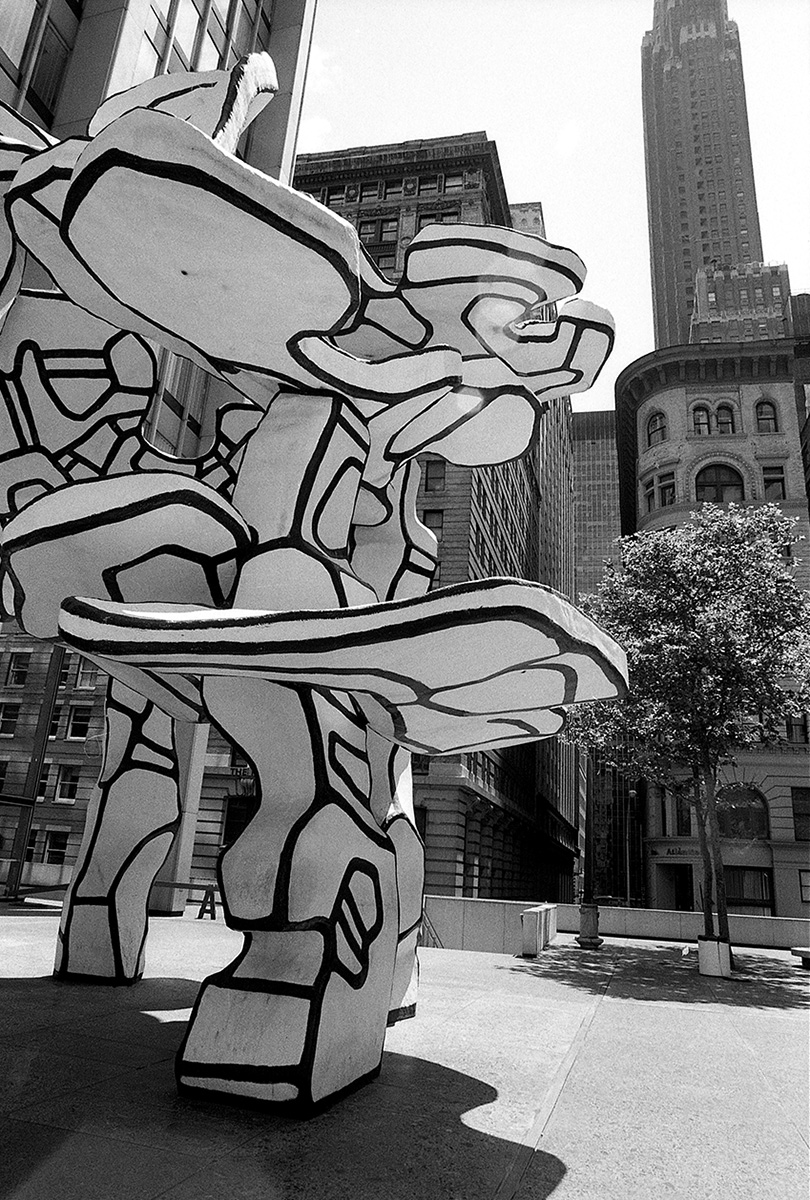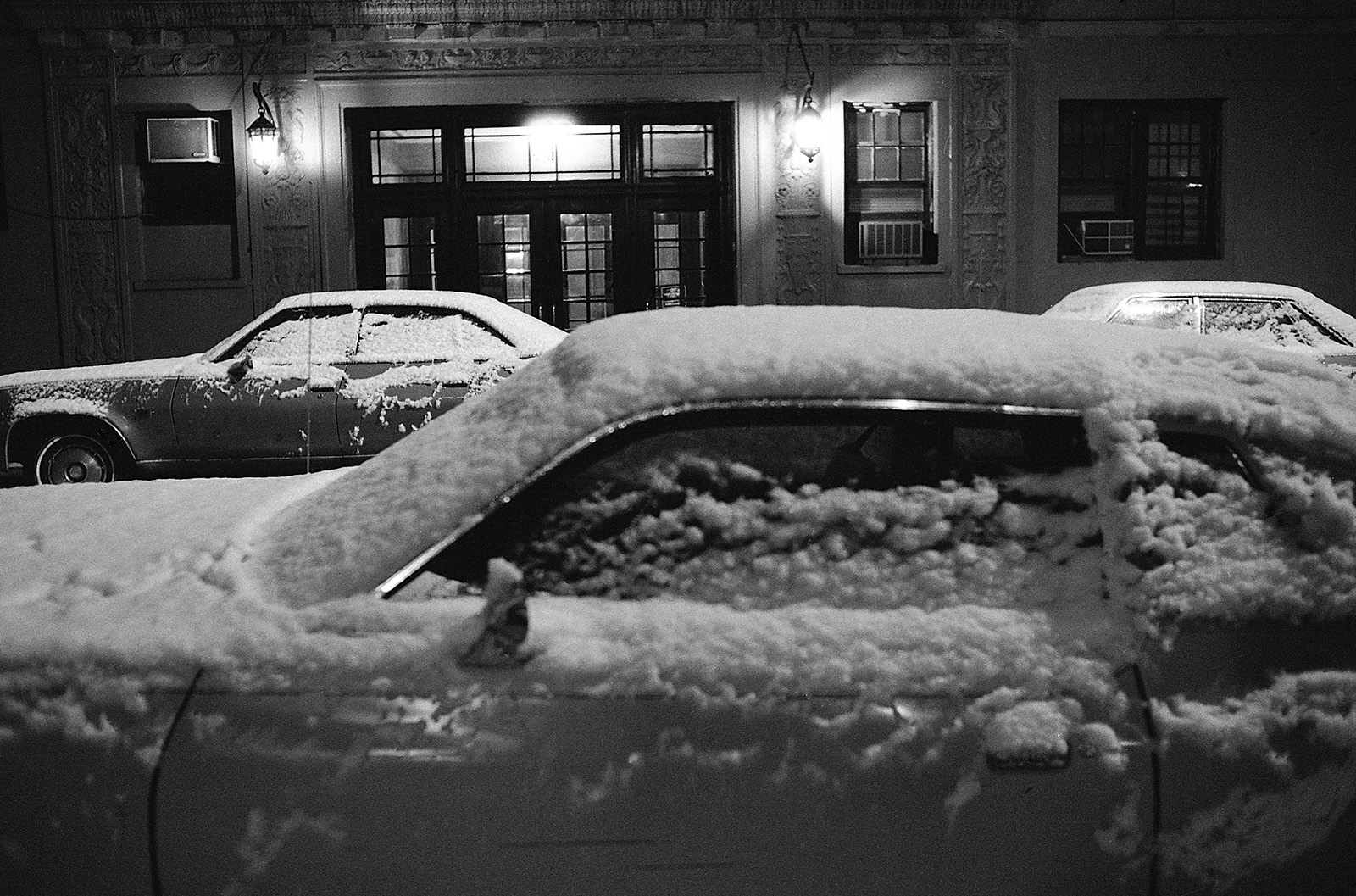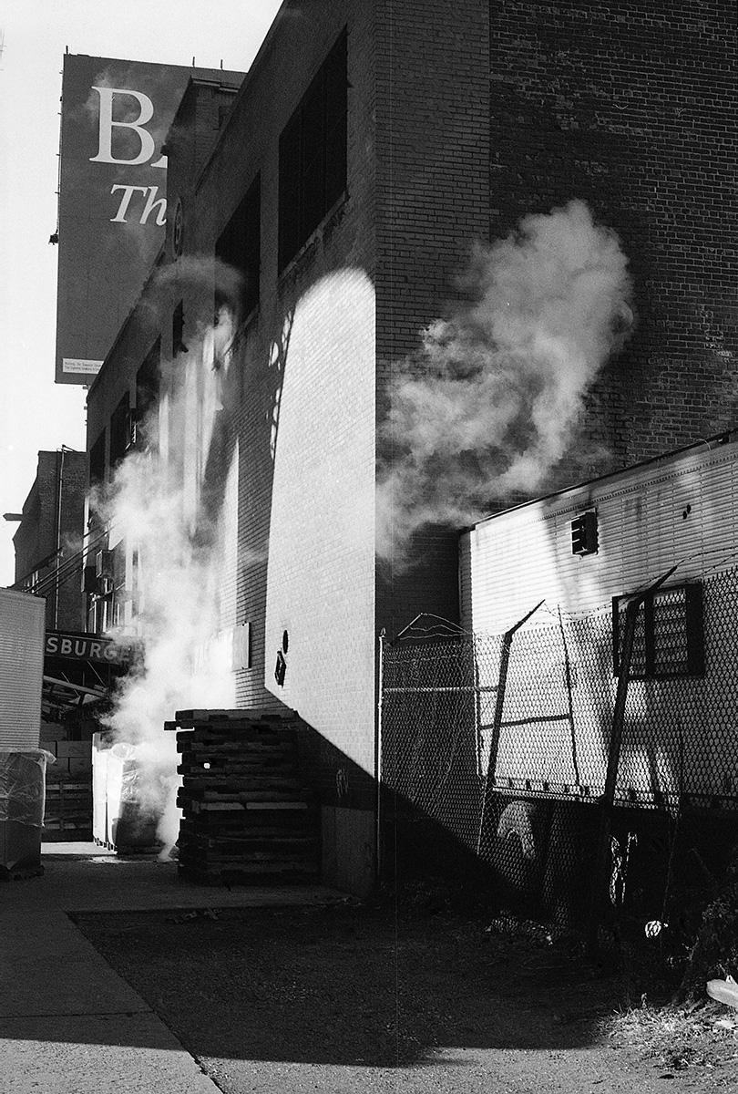 C’était un hiver glacé. Il neigeait et j’aimais photographier la nuit et la pluie. Mon ami écrivain Claude Jacot connaissant mes gôuts atypiques pour les lieux insolites m’emmena au nord de Manhattan sur le site d’un grand port brulé dont les ruines calcinées m’attiraient. Leurs formes noires devenues des sculptures se découpaient sur le ciel pâle, dressant le décor d’un film de science fiction.