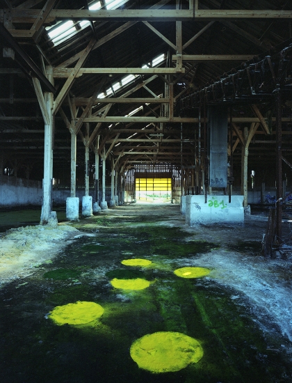 J’aime les Usines, ces modules géants de tôle et de béton où s’effectue encore la dernière alchimie visible à l’oeil humain, la transformation de l’acier. Immenses mécanos aux cheminées crachant des fumées de couleur, aux formes futuristes et mystérieuses, ils ont fait partie de mes paysages. Et puis un jour, on a commencé à les détruire et ils sont tombés tels des châteaux de cartes, des géants blessés. Je suis toujours rentrée par ces portes monumentales, émerveillée, hors échelle moi-même, telle Alice prenant peur.