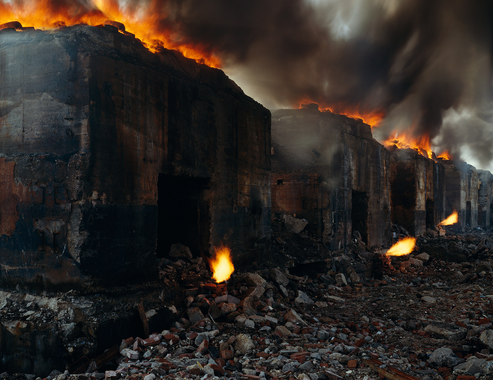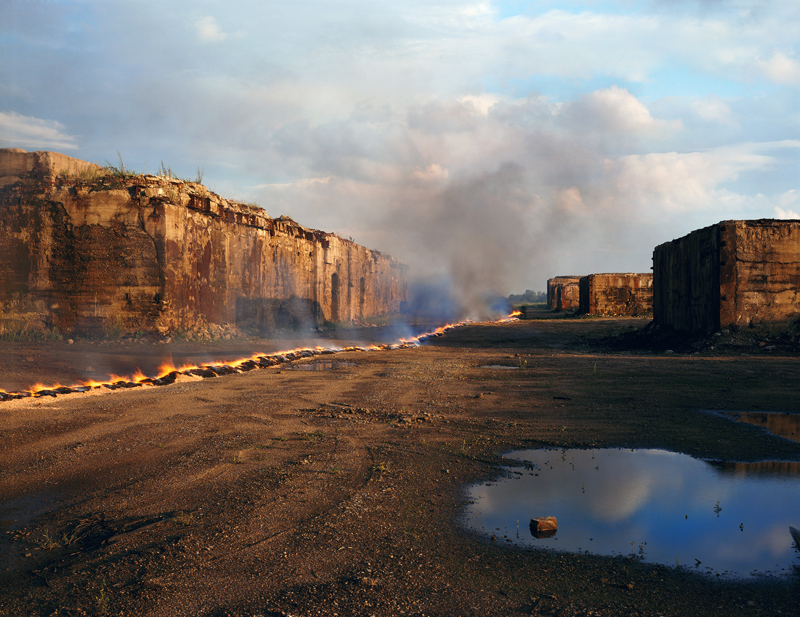 Ces photographies, dans lesquelles s’interposent des installations de pigments et de feu ravivent ce monde enflammé !