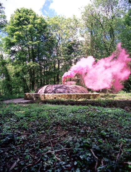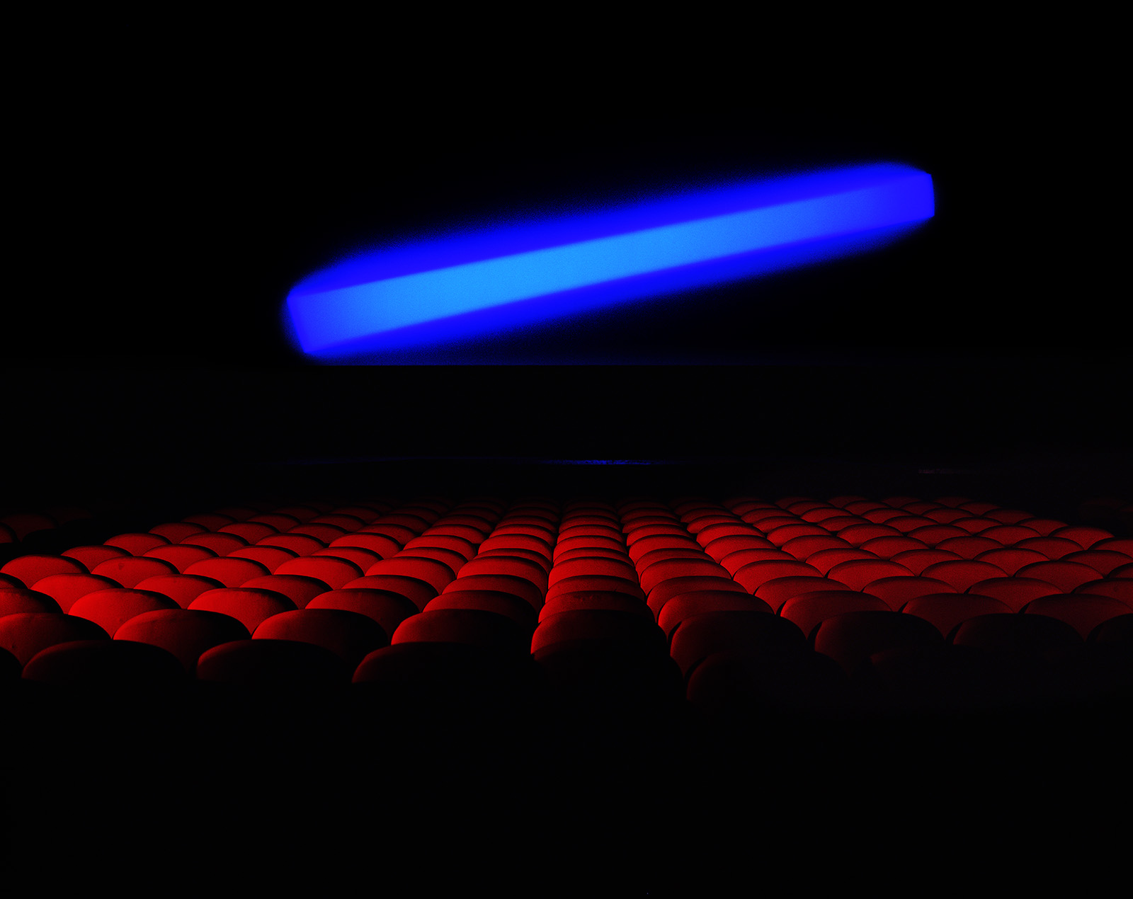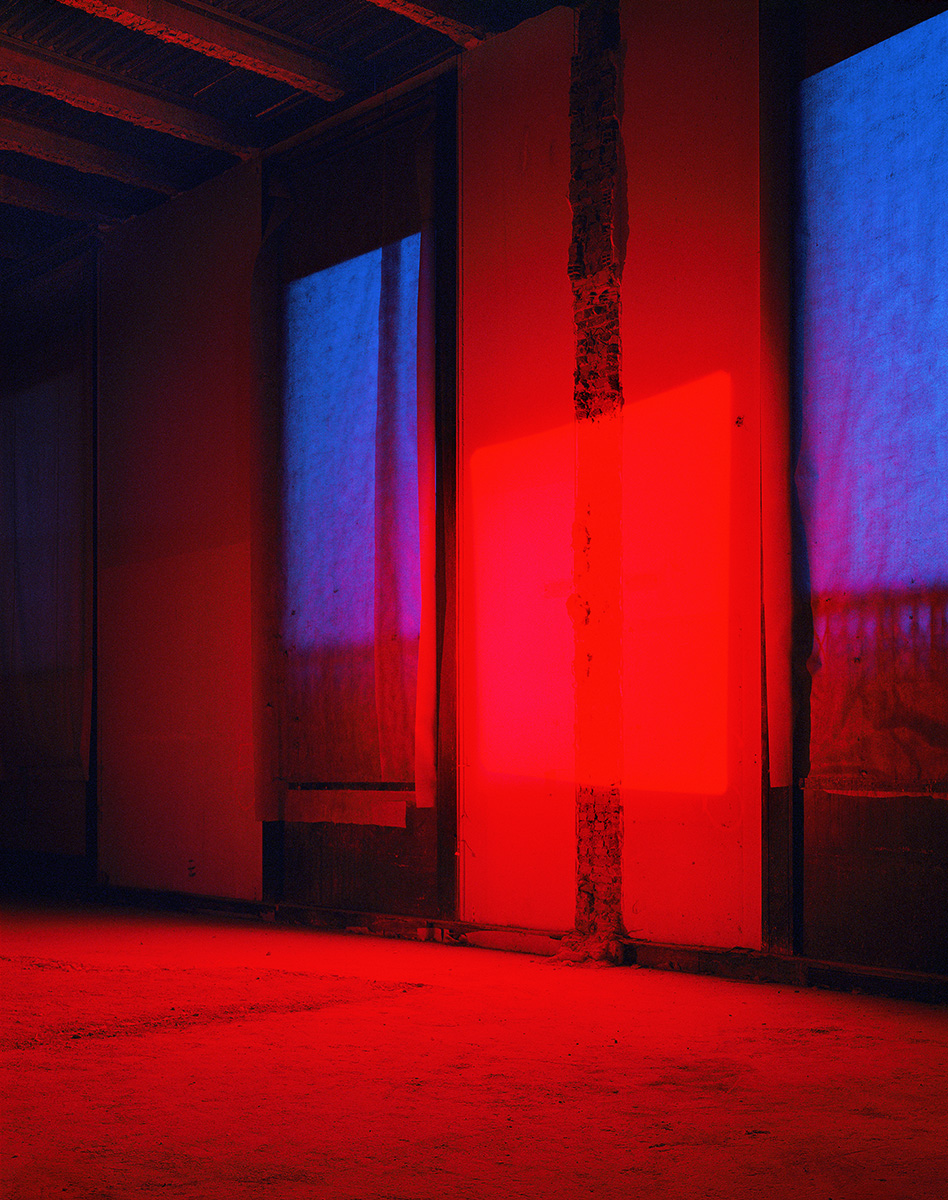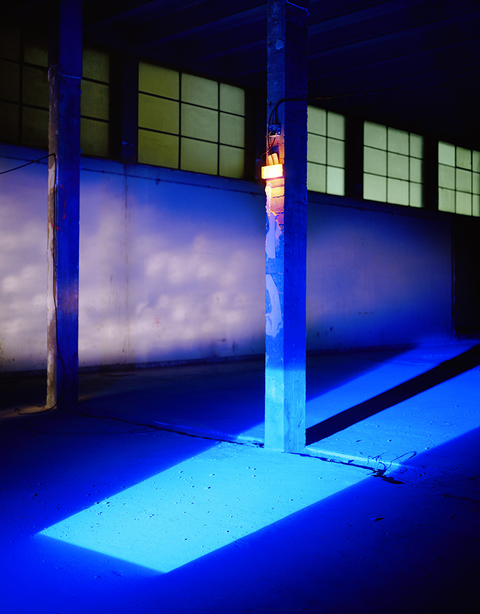 Au début des années 2000, les palais du Trocadero étaient en travaux. Dans l’entre-deux de la rénovation, j’ai pu obtenir les clès de ces monuments des années 30. Ne pouvant pas utiliser les pigments avec lesquels j’avais « taguée » la Base sous Marine de Bordeaux, j’ai choisi de projetter ces mêmes monochromes à l’aide d’un projecteur à découpe de théatre et de dessiner la lumière avec des