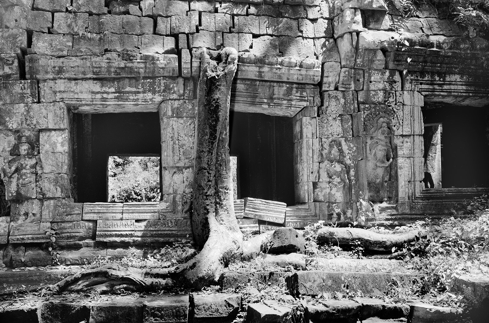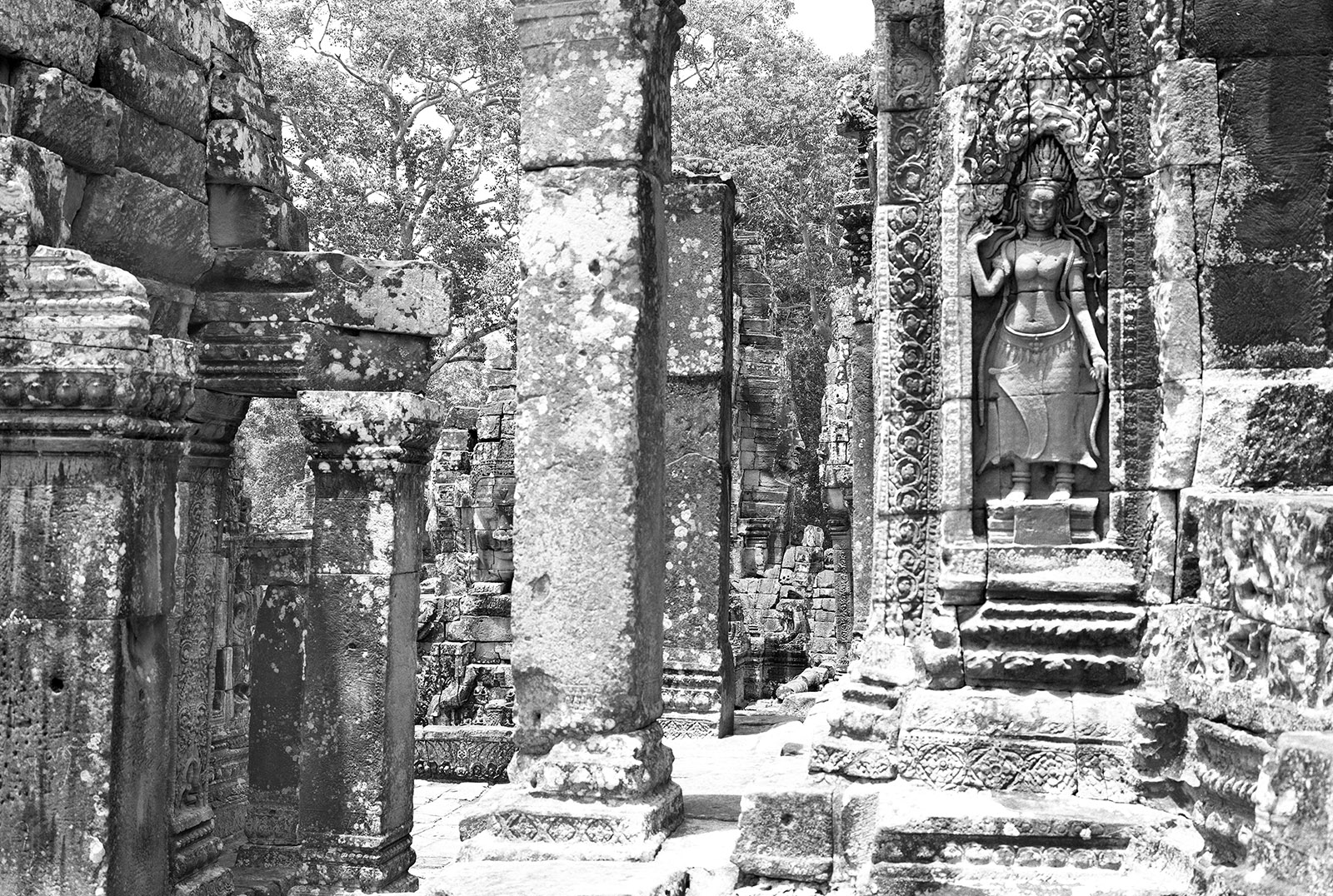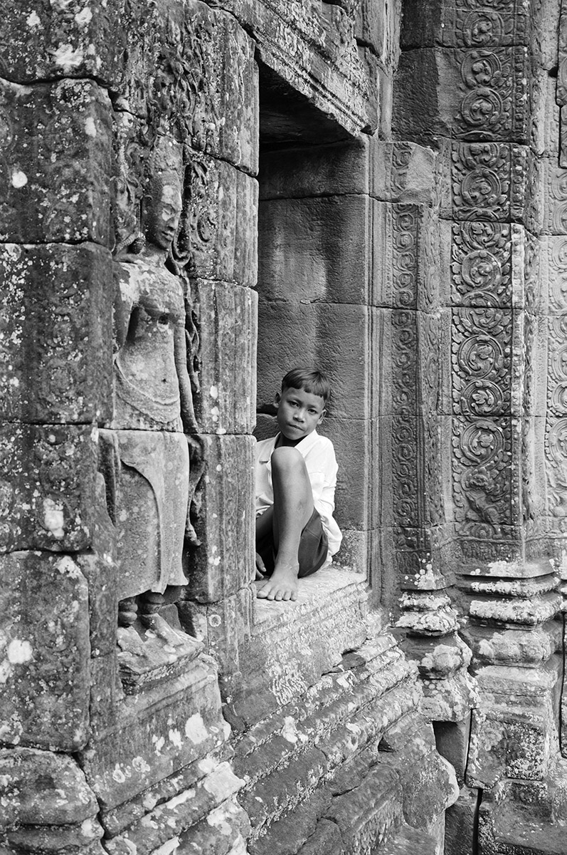 Mais je dois surtout ces photos à un adorable petit bonhomme, mon assistant cambodgien qui connaissait les temples bien mieux que les fonctionnaires du Musée Guimet… qui s’appelait Veun et qui m’a protégé des serpents et des bombes anti personnelles qui jonchaient encore les sites archéologiques !