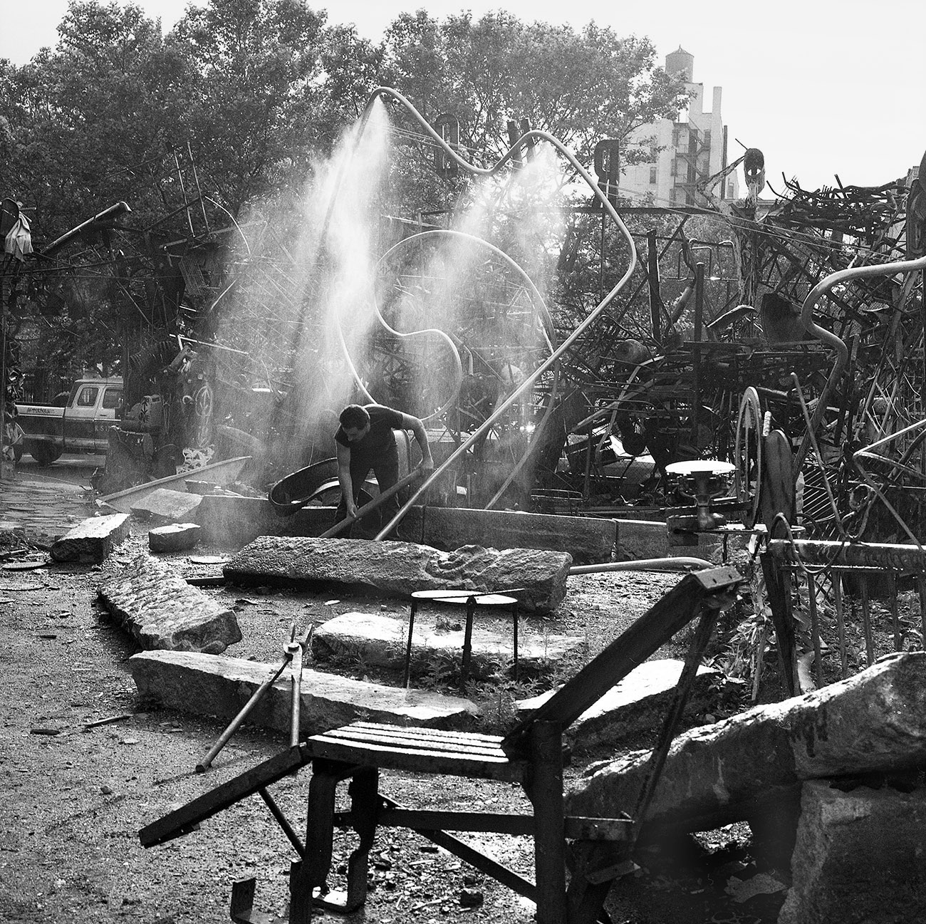 En 1993, c’est à New York que j’ai découvert « Rivington School » grâce à Richard Serra, le grand sculpteur d’acier, avec qui je travaillais. Sur les conseils de Richard, son assistant nous amena alors visiter ce qu’il restait du jardin-friche de sculptures au croisement de Rivington et de Forsyth Avenue.