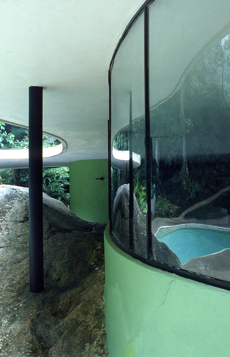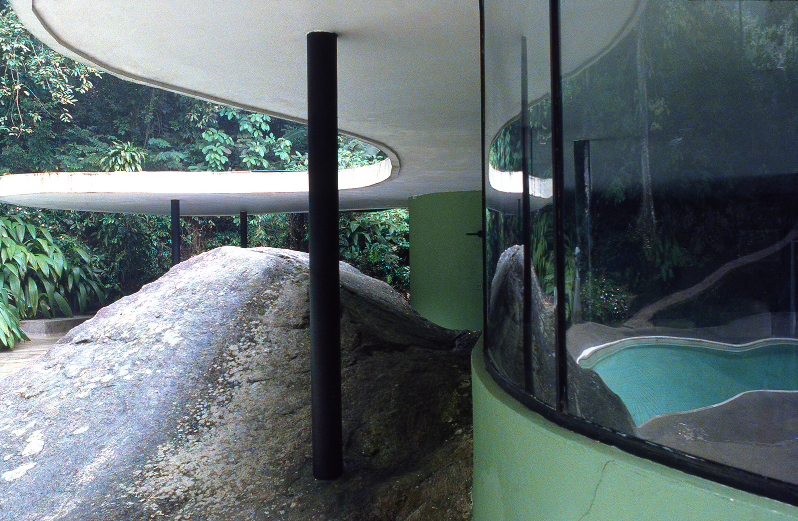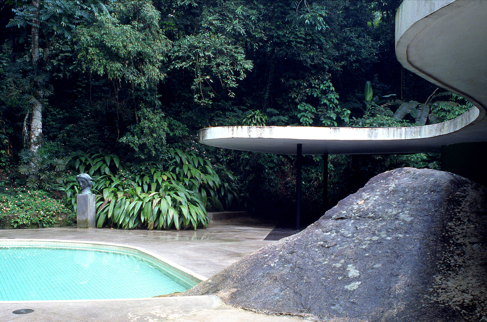 Maison iconique de l’architecture moderniste brésilienne, Oscar Niemeyer construit en 1951 pour lui et sa famille cette maison au charme tropical non loin du centre de Rio de Janeiro, sa ville. La maison de Canoas offre des courbes ludiques et sensuelles et ses murs de verre invitent les occupants à profiter de la nature luxuriante qui l’entoure. Même le rocher qui jouxte la maison est incorporé dans le projet initial qui, par le choix de sa situation dans la forêt tropicale, cherche à intégrer la nature dans l’architecture.