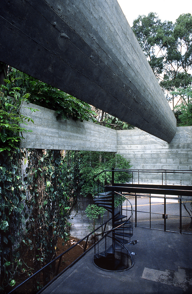 Je suis allée au Brésil pour rencontrer Oscar Niemeyer et pour travailler sur l’architecture moderniste à Rio de Janeiro. Pendant ce voyage, j’ai aussi rencontré le grand architecte Paulo Mendès de Rocha à Sao Paulo. J’ai été fascinée par son éthique futuriste. Il nous a fait visiter une de ses maisons individuelles dans le plus pur style pauliste brutaliste, la Millan House qui alors n’était pas habitée. La texture du béton nu révélait une parfaite géométrie épurée que le gris neutre de la matière accentuait, laissant voir les formes parfaites de ses escaliers tournants.